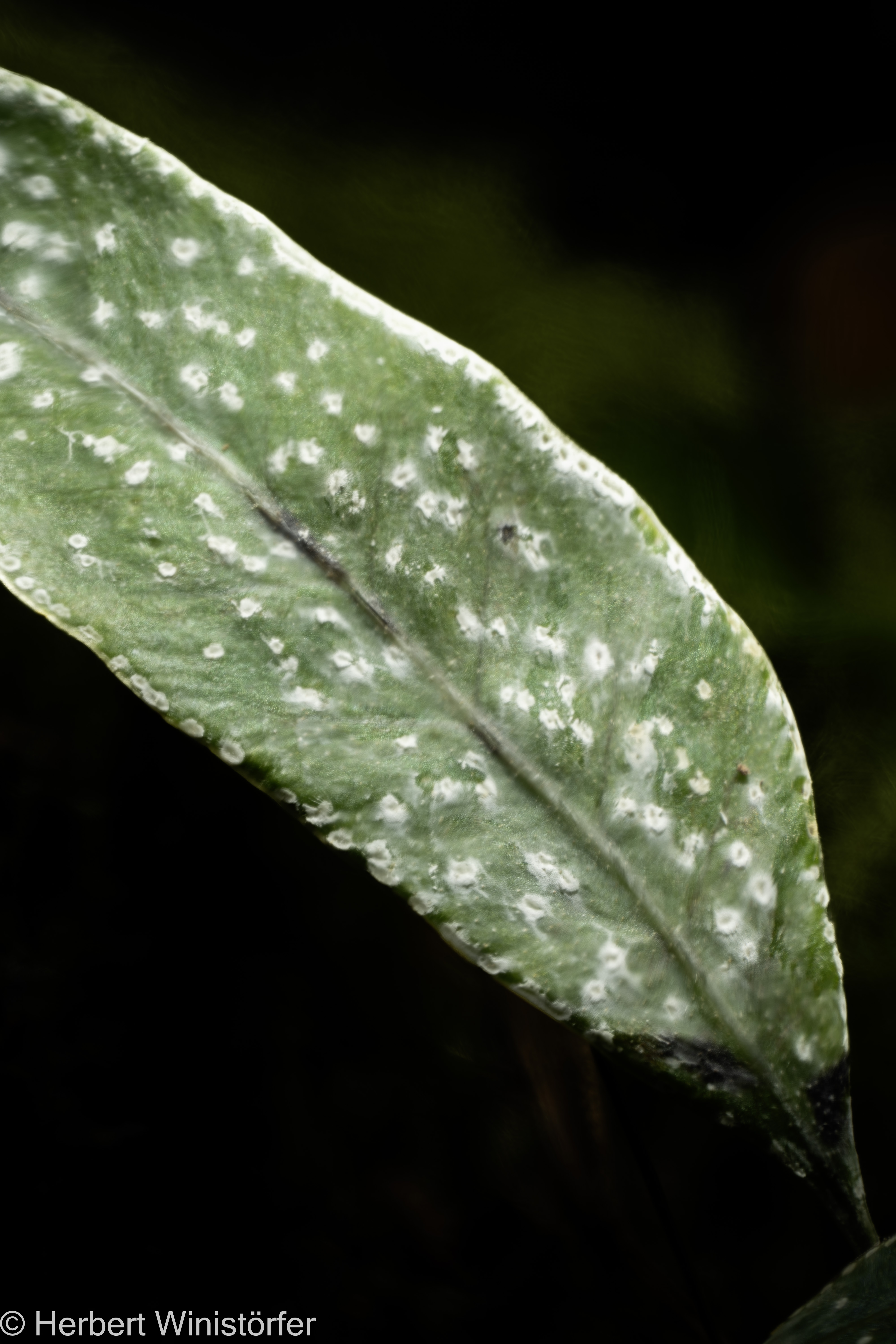 How does all this apply to my S. albidoaquamata? The species belongs to the Polypodiaceae family where hydathodes are widespread (Mehltreter e.a. 2022: fig. 3). Its natural habitat are tropical primary and secondary forests, scrubland, disturbed sites etc., often near streams, at alitudes between sea level and 3500 m.a.s.l., where it lives as an epiphyte, epilithe or terrestrial, common in most localities (Hovenkamp 1998: 46). It seems plausible that the ability to form hydathodes can be advantageous for this way of living.
