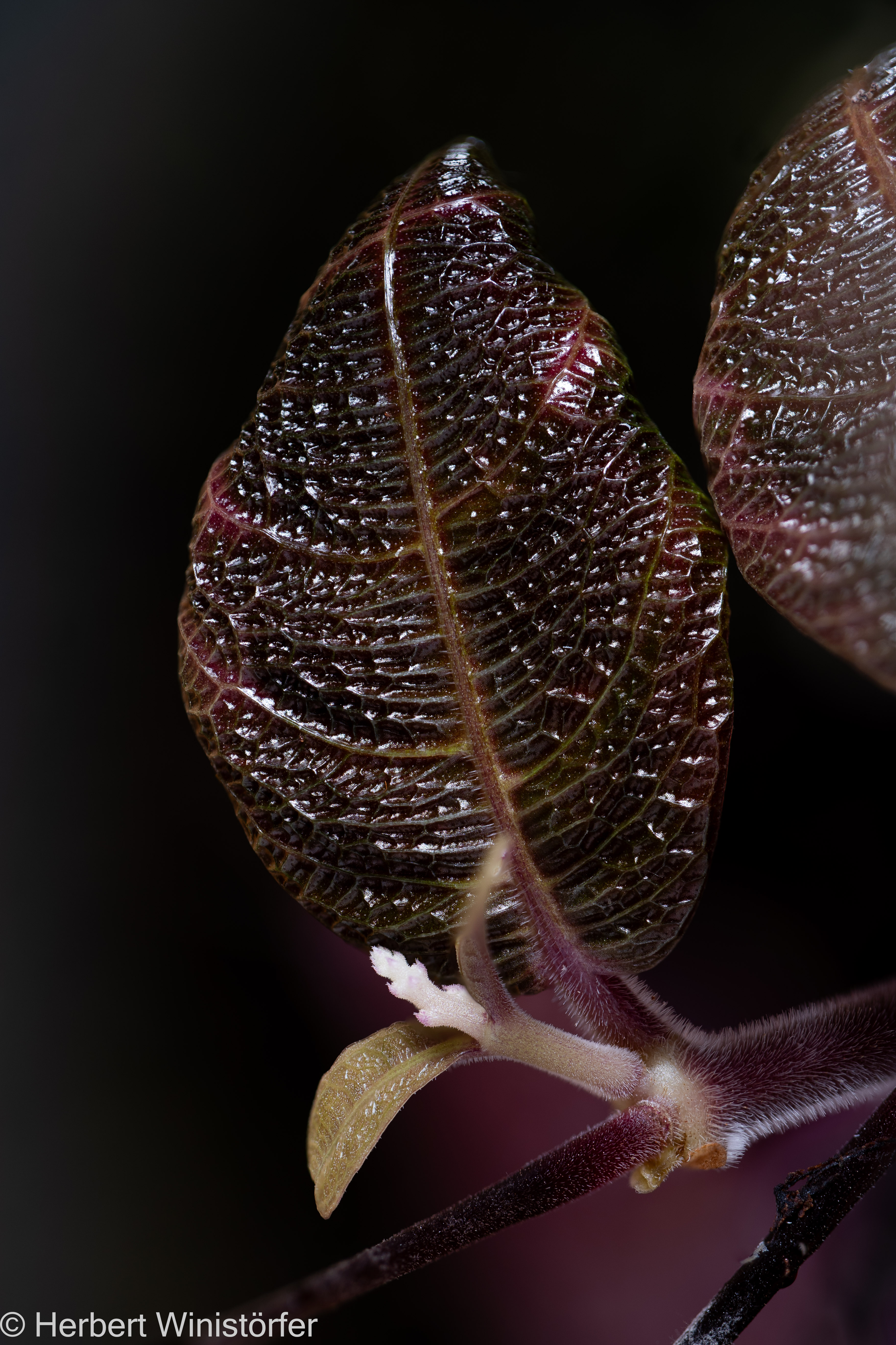 When I acquired this plant, it was labelled Acanthaceae spec. ‚Kalimantan‘. The same plant was offered by traders under the names Argostemma spec. ‚Borneo‘ or Cosmianthemum spec. ‚Borneo‘. It is unusual among serious growers that not even the genus of a plant is identified with any degree of reliability. Here however, I disregarded my own principle because a) I trust my nursery to only offer plants propagated by itself, because b) reports on the obviously same plant showed that it should be easy to grow in a terrarium, and because c) I couldn’t resist the dark, reddish-brown leaves with their distinctive ribbed surface. It was only much later that I understood that the peculiar namelessness of the plant was no coincidence.